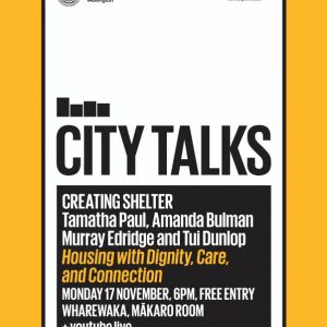 Te Kāhui Whaihanga are bringing together an incredible panel with Green MP Tamatha Paul, Reverend Murray Eldridge of the City Mission, community worker Tui Dunlop, and architect and urban planner Amanda Bulman for a conversation about the spaces we share and those we overlook.